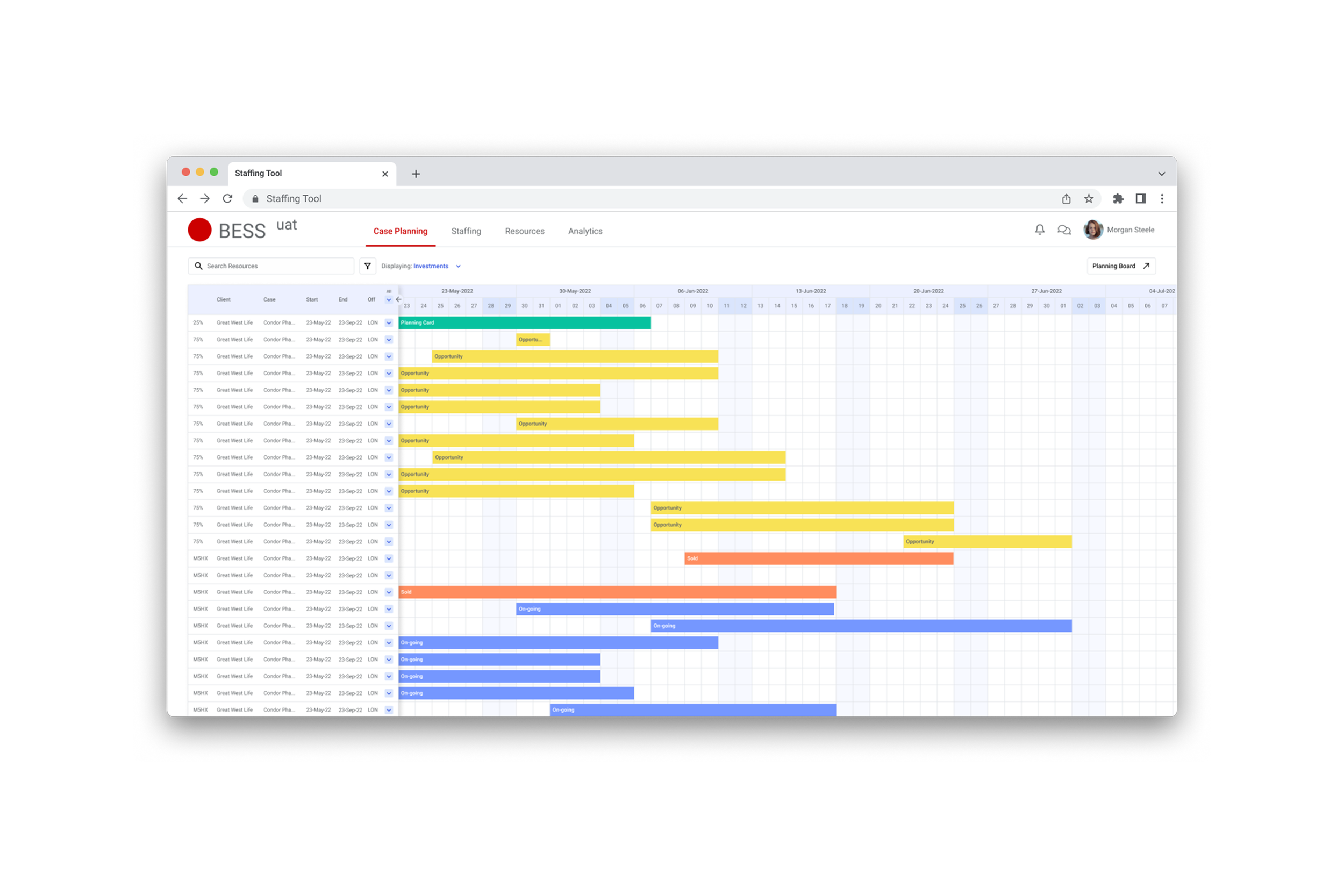 Goal: Create a centralized, real-time staffing tool that could scale across teams while supporting more advanced planning for Private Equity.